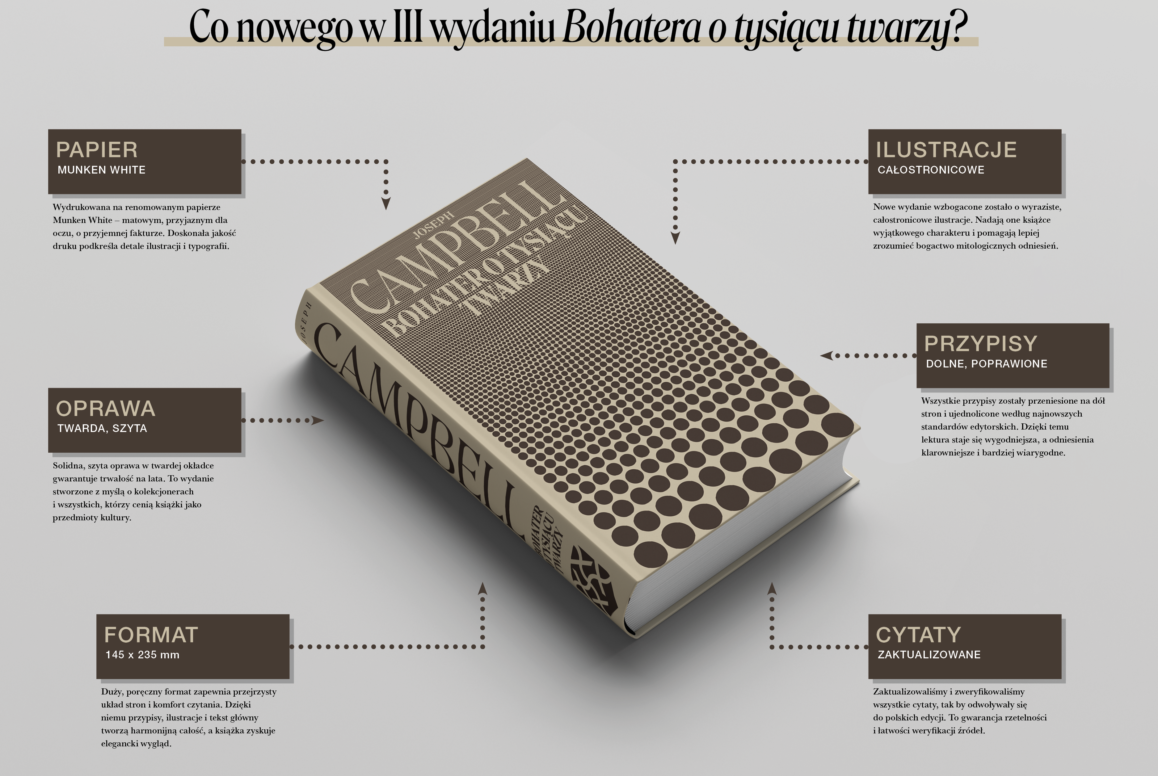 Słowa Campbella mają niezwykłą wagę nie tylko w środowisku akademickim, lecz także wśród szerokiego kręgu czytelników, którzy uznają jego przeszukiwanie mitologicznych ścieżek za istotne dla własnego życia… Książka, z której jest najbardziej znany, Bohater o tysiącu twarzy, to błyskotliwe studium odwiecznej walki człowieka o tożsamość wyrażonej w starożytnych mitach heroicznych.